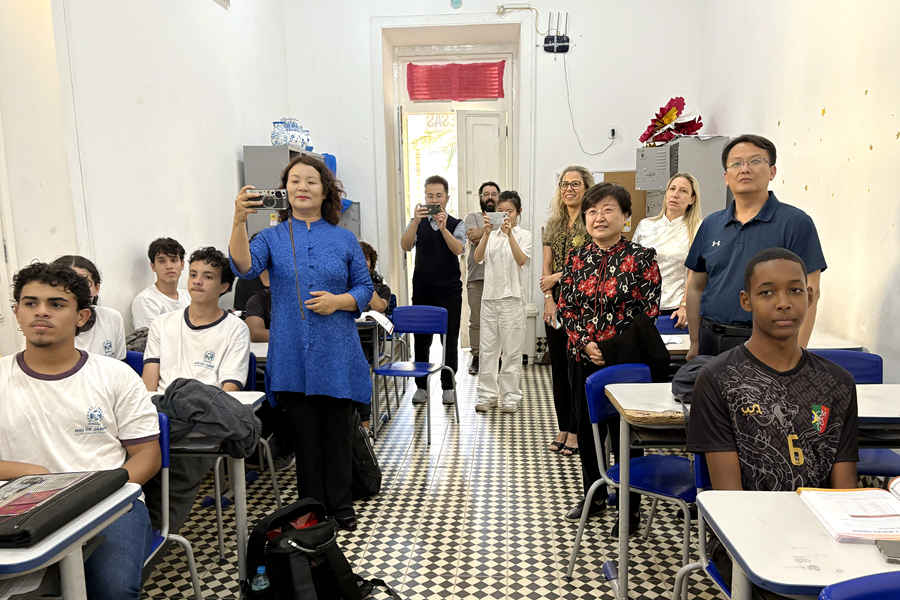 10月23日,代表团访问了巴西里约弗鲁未嫩塞联邦大学葡中双语高中孔子课堂,学校校长Elis及其团队和河北师范大学派出教师接待并交流。双方就孔子课堂建设过程中遇到的困难及解决方案进行了深入的探讨。