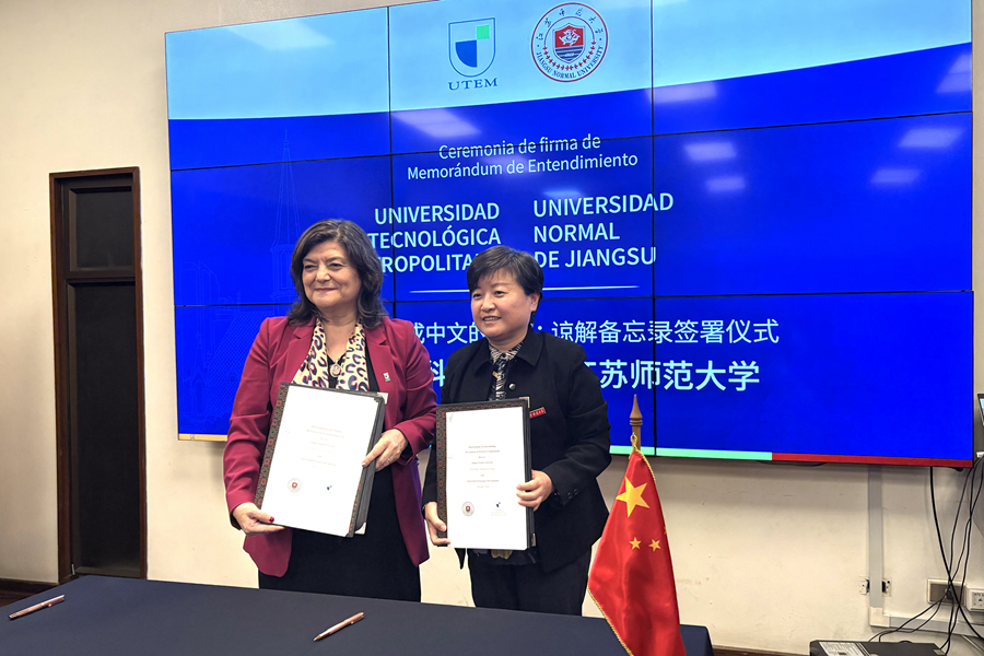 开幕式上举行了我校和智利大学国际问题研究院合作协议签署仪式,以及江苏现代化成果图片展启动仪式。