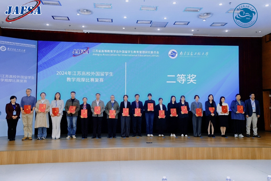 11月2日-3日,2024年江苏高校外国留学生教学观摩比赛复赛在南京信息工程大学举行。经初赛、复赛激烈角逐,我校国际学院袁媛老师讲授的课程《新目标汉语3》荣获特等奖、机电工程学院张岚峰老师讲授的课程《Fundamentals ofManufacturing Technology》荣获二等奖。这是继2023年我校获得特等奖以来再次获此佳绩。