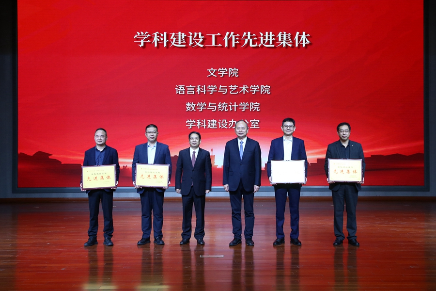 会议表彰了学校学科建设工作先进集体和先进个人。文学院、语言科学与艺术学院、数学与统计学院和学科建设办公室等4家单位荣获“学科建设工作先进集体”,陈木法、杨亦鸣等28人荣获“学科建设工作先进个人”。随后大会进行了交流发言。中国语言文学和数学两个学科就博士点申报成功介绍了相关经验,教育学和物理学两个学科代表2026年拟申博学科就学科建设思路等进行了交流。