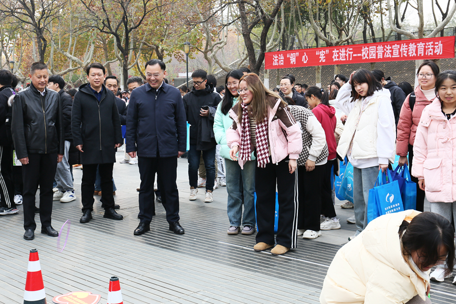 12月4日下午,我校举办国家宪法日暨宪法宣传周校园普法宣传教育活动。校党委常委、纪委书记闾浩和徐州市司法局党组书记、局长艾新平出席活动,铜山区委政法委、铜山区司法局、法学院负责同志、校普法志愿者大队志愿者及师生代表参加活动。