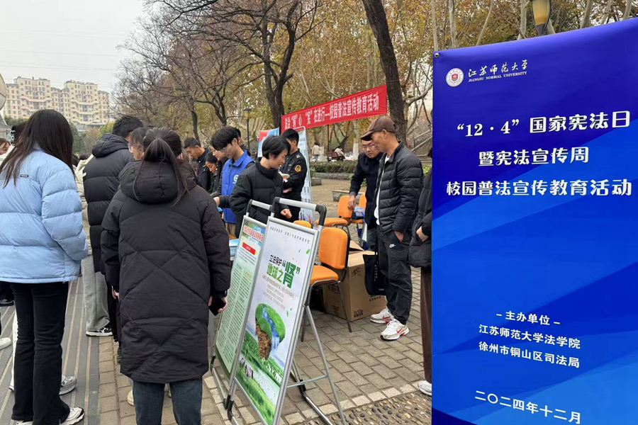 在集中普法宣传教育活动区,来自铜山区政法委、司法局、人民法院、人民检察院、教育局、公安局、应急管理局、人力资源和社会保障局等15家单位的普法宣传员携手江苏师范大学普法志愿者大队志愿者们面向全校师生开展现场普法宣传教育活动,内容涉及《宪法》《民法典》《反电信网络诈骗法》《突发事件应对法》《消费者权益保护法》《食品安全法》《劳动法》等领域。在法治游园会活动区域设置了法治盲盒、法治视力表、法治留言板、法治套圈、法治连连看等游戏环节,广大师生通过参与游戏回答问题、破解法治谜语,掌握宪法知识。活动现场人头攒动,反响热烈。