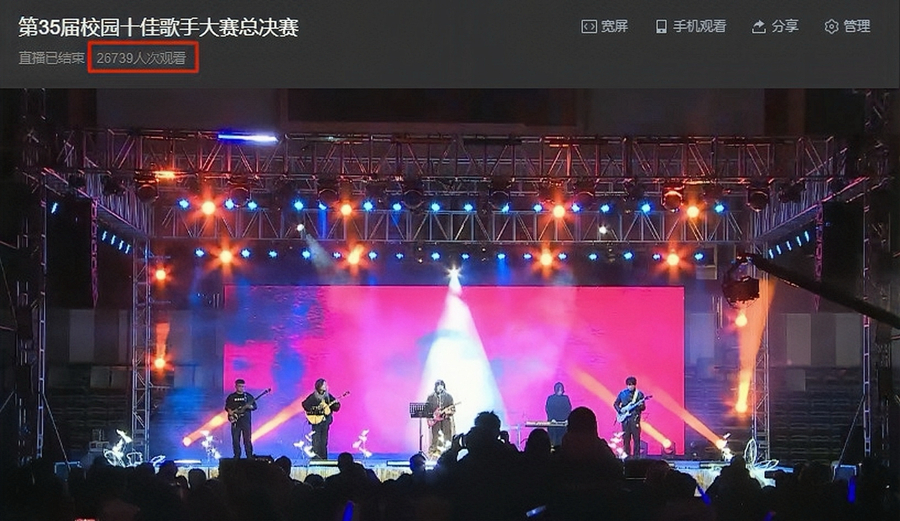 本次大赛全面联合“爱师大”APP,通过“十佳歌手大赛”K吧专栏,大力加强活动宣传力度,提升青年活动参与度和积极性。全赛程学生自主参与数达8400人次,网络直播在线校内师生观看超2.6万人次。首次创新大众评审投票机制,邀请线上线下师生共同参与“十佳歌手”投票。大赛在参与人数、师生关注度、网络投票数等方面均创新高,进一步扩大了活动的覆盖范围和影响力。活动得到了我校信息化建设与管理处、保卫处等单位的大力支持。