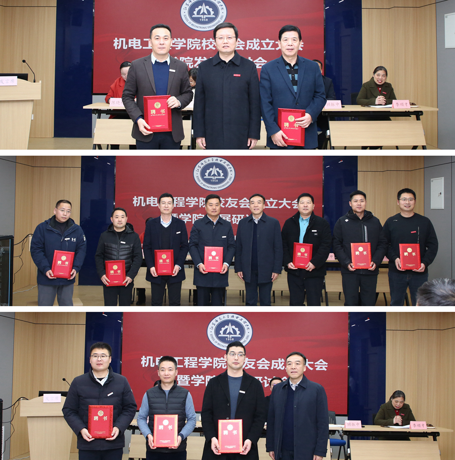 会议听取并审议通过机电工程学院校友会筹备工作情况的报告和学院校友会章程,酝酿并选举产生校友会第一届理事会组成人员。会上,宣读了学校《关于同意机电工程学院校友联谊会第一届理事会组成人员的批复》,并为第一届理事会成员颁发聘书。