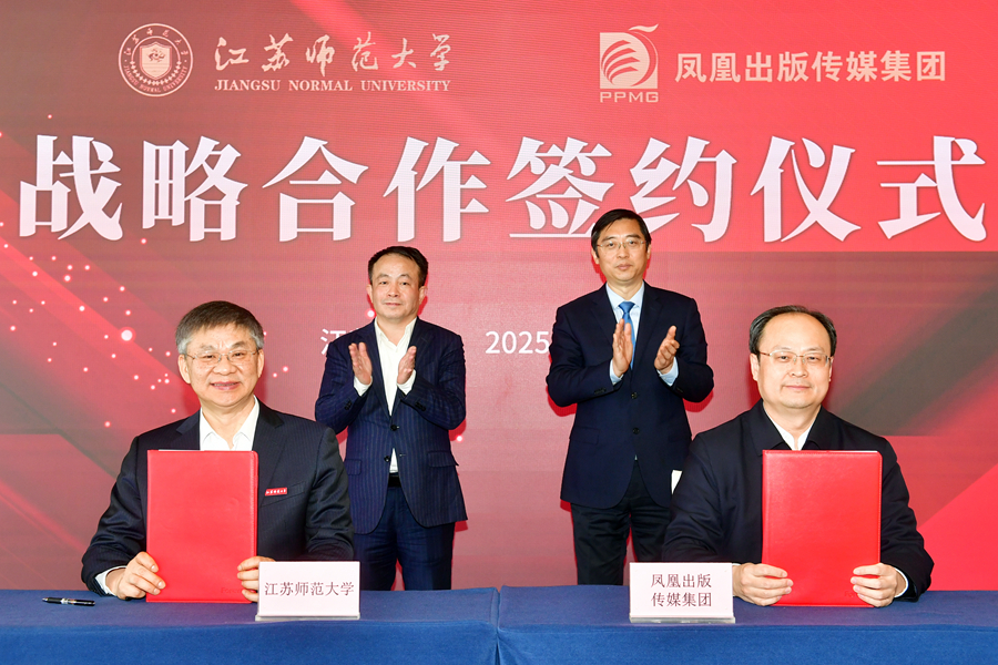 1月17日下午,我校与江苏凤凰出版传媒集团合作签约仪式在南京举行。校党委书记芮国强,校党委副书记蔡国春,校党委常委、宣传部部长孟召学,凤凰出版传媒集团党委书记、董事长章朝阳,集团总经理、党委副书记李贞强,集团副总经理、现代快报报社社长屠法等出席仪式。